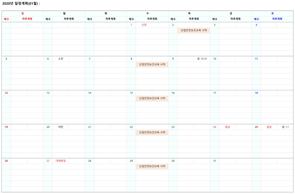 | 2020년 01월 산업안전·보건교육 교육일정안내 | 관리자 | 2020-01-07 |