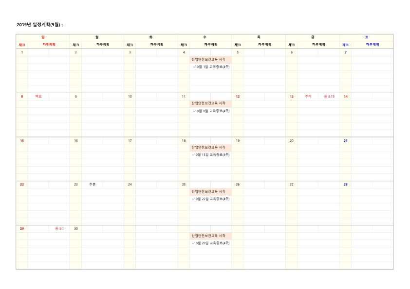 2019년9월 진행가능한 관리감독자 및 근로자 산업안전·보건교육 계획을 아래와 같이 안내 합니다.