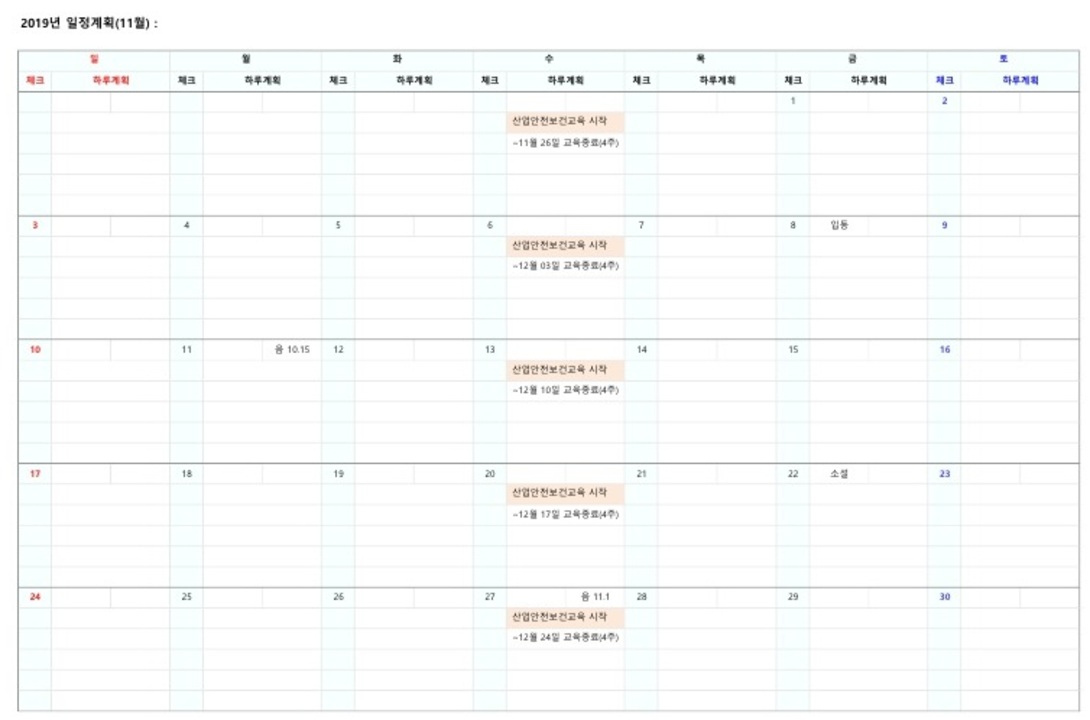 2019년11월 진행가능한 관리감독자 및 근로자 산업안전·보건교육 계획을 아래와 같이 안내 합니다.