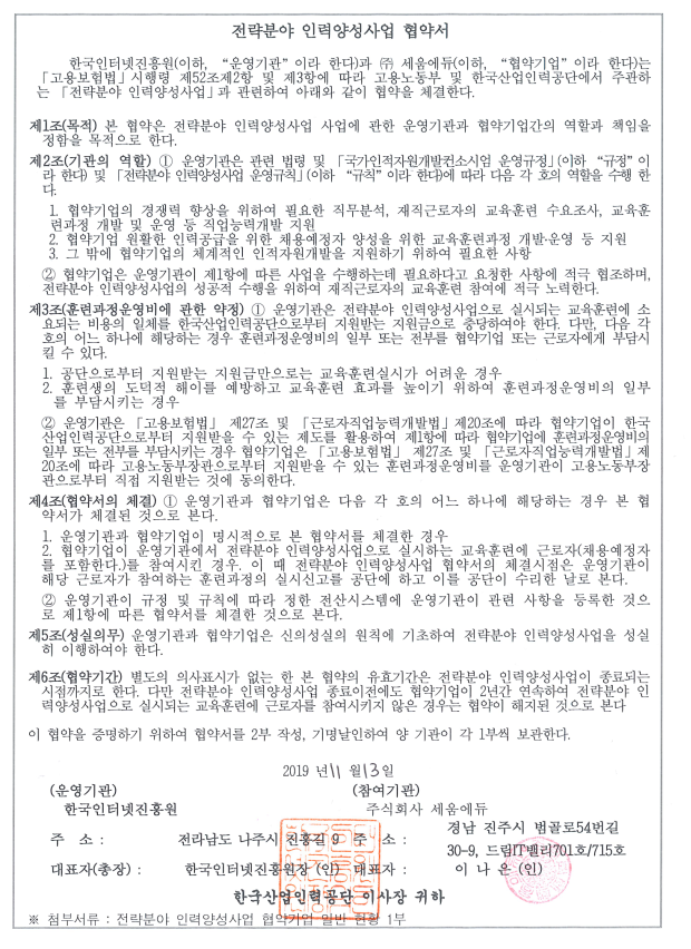 세움에듀가 KISA(한국인터넷진흥원)와 사이버보안을 위한 업무협약을 체결하였습니다.