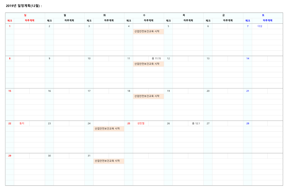 2019년12월 진행가능한 관리감독자 및 근로자 산업안전·보건교육 계획을 아래와 같이 안내 합니다.